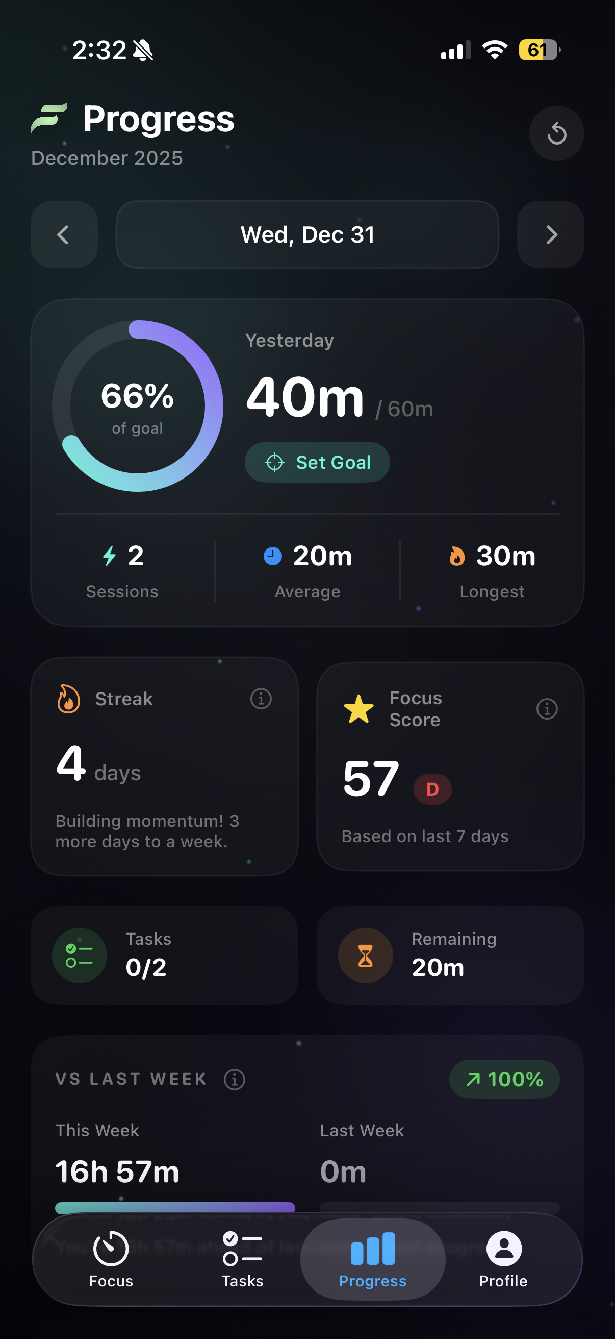 Build consistency over time. Track your daily focus streaks and maintain momentum.